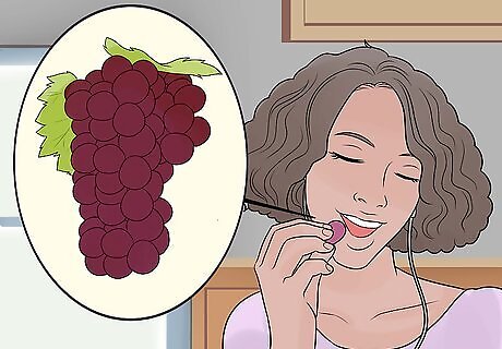 Consume fruits and vegetables. Shoot for 7-9 servings per day. Eat the ones you know you like and take this opportunity to find tasty new fruits and vegetables. Look for new recipes and preparations to help guide you. And for fruit, if in doubt, throw it in a smoothie. For vegetables, most can be roasted successfully in the oven at high heats to cook, if you aren’t planning to eat them raw. Some of the most health fruits and vegetables are: Dark, leafy greens (spinach, kale, chard, beet greens) Beets Red peppers Sweet potatoes Berries Apples Kiwis Grapes Papaya