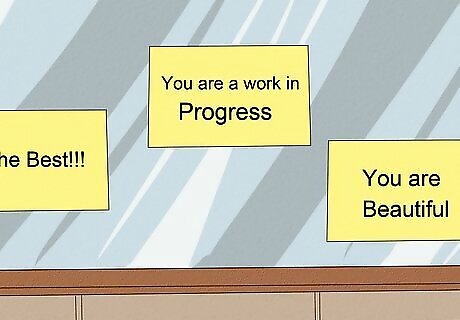 Give yourself reminders. Periodically remind yourself of what you have to lose if you give up and everything you have to gain if you continue on the path to recovery. Social support is important, but self-support is also important. One simple way to continually remind yourself is to write yourself notes. Write down words of encouragement, like "You are beautiful," or "You are a work in progress," and place them by your mirror or closet.