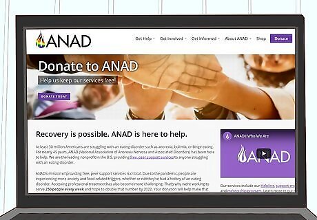Search for a support group. Ask your doctor, nutritionist, or counselor to recommend a local eating disorder support group. Many of the people in the group will be dealing with similar issues, so you should be able to find both understanding and encouragement. Stick with formal support groups guided by a mental health professional for best results. Some informal groups can accidentally turn pro-anorexia and may encourage people to compete to see who is thinnest.