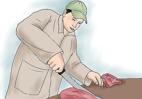Foster an ability to work with animal carcasses. In order to ensure that you have the desire and stomach to be a meat cutter, you may want to experiment with hunting or basic butchering tasks. Although this is not required, you cannot be squeamish about meat and animal by-products.