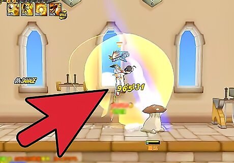 Use Eagle Dive. Ara can dive toward her enemy from midair, causing devastating physical damage to both monsters or players in PvP, knocking down opponents once hit. To execute this combo, press Z twice and then X twice (Z, Z, X, X).