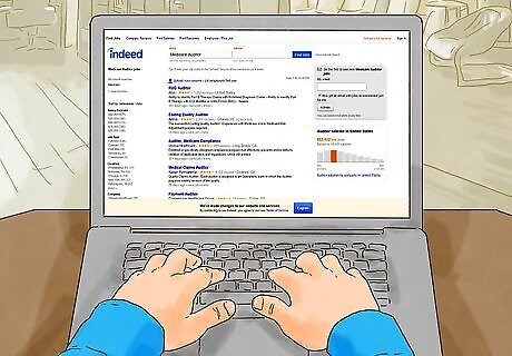 Check for job listings from major medical and insurance companies. Insurance companies, hospitals, and other medical corporations may hire a Medicare claims auditor to review their internal Medicare claims. Your job would be to check and correct any discrepancies that might cause a problem with the government. To find job listings, you can check the website of major corporations or look at job boards, networking websites, and employment agencies.