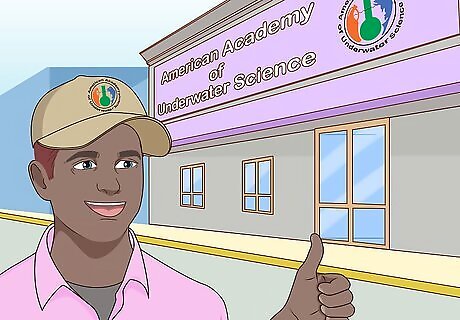 Join the American Academy of Underwater Sciences if you want to become a research diver. Research divers collect scientific data for marine life and geology research, so you will need a science-based degree, such as Biology, before you can be hired at a research institution. You will learn how to dive in specialized environments like polar, night, and aquarium diving, and how to properly collect data from living and non-living subjects.