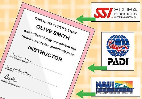 Get your scuba certification. Being comfortable in the underwater environment and with the physical feeling of diving is necessary if you want to become a professional diver. Training for scuba diving is broken up into three steps: classroom time, confined water dives in swimming pools, and open water dives. Some great Scuba programs include PADI (Professional Association of Diving Instructors), NAUI (National Association of Underwater Instructors), and SSI (Scuba Schools International). Pricing can vary for each of the three stages of certification, but the total cost of Scuba certification is about $300-500. Make sure your scuba program is ADCI-certified (Association of Diving Contractors International) if you plan to go into welding and construction.