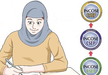 Apply for an INCOSE certification. Being INCOSE certified will increase your job prospects and advancement opportunities. To get certified, you’ll need to pass an exam and meet minimum education and experience requirements. There are 3 levels of professional certification: An associate systems engineer professional (ASEP) simply needs to pass an exam. A certified systems engineer professional (CSEP) needs 5 years of experience, a degree, and 3 professional references. They also need to pass an exam. An expert systems engineer professional (ESEP) needs 25 years of experience, a degree, references, and must be in a leadership position. Instead of an exam, they must pass a panel review.