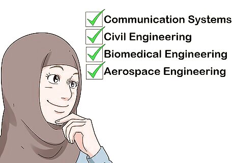 Decide what kind of systems you want to manage. A systems engineer needs to have broad technical knowledge, but you’ll need to choose an area of focus. Possible industries include communications systems, civil engineering, biomedical engineering, and aerospace engineering. A system is a broad definition. It could include a city’s infrastructure or a guided missile’s software and hardware. The knowledge and experience you’ll need depends on the type of system you’re interested in managing. Think about your interests. If you’re into coding, algorithms, and software development, a job in communications systems management might be the best route. You’d want a solid foundation in information technology and software engineering. On the other hand, if you want develop defense systems or rockets, you’d want to focus on aerospace, electrical, or mechanical engineering.