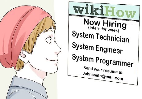 Look for undergraduate work shadowing opportunities. In your first couple of years as an undergraduate, shadow with companies in your industry during breaks from school. You’ll gain an introduction to the practical and professional aspects of your industry. Smaller companies often allow undergraduate students to shadow a technician, engineer, or other professional for a week. Ask your professors, academic counselor, and school’s career services and internship offices for help finding shadowing opportunities. Look for relevant companies in your area, track down the name and contact info of a systems engineer (or other relevant position), and ask if they're open to shadowing.