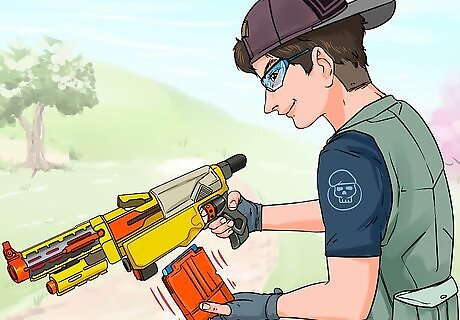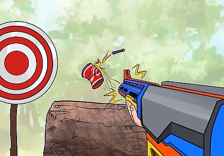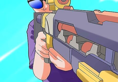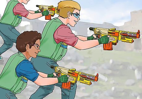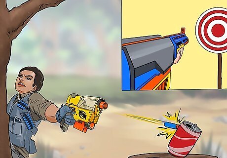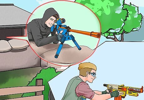Train and aim first. To do this, get familiar with your Nerf gun. Start with one first Nerf gun, and learn everything about it, knowing what direction it pulls to. Does it arc higher up or down?