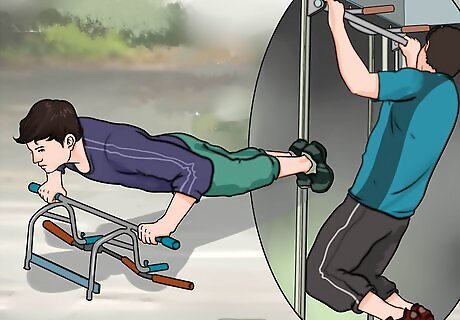 Stay fit. Start by eating a healthy diet, with lots of vegetables and fruits. Sugars will make you crash and burn within 15 minutes, and you'll likely to get a headache . Avoid eating too much of them. After you've gotten your diet working, concentrate on exercise. When in battle, you may need to sprint or run for a long period of time, such as 10–20 minutes! Practice on a treadmill, and doing as many push-ups and sit-ups and jumping-jacks as possible.