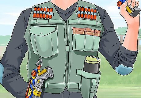 Assemble your full weapon arsenal. You will at least need a pistol (a Blitzfire, Reflex 6, or Kronos, etc.), a rifle or two (Villainator, Saturn, Hypnos, Artemis, Hades, etc.), and a machine gun (Spectrum, Destructor, DartStorm, V-Twin, Perses, Hera, Nemesis, Khaos, etc.) If you don't have a lot of nerf guns, practice with what you do have.