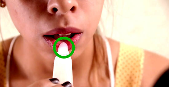 Apply a bright lipstick shade to the center of your bottom lip. Popular hues are deep berry or bright red, but you can use any highly pigmented lipstick color you like. Use the fleshy part of your index finger or a lip brush to dab the lipstick right in the center of your bottom lip. Make sure you apply it so that it reaches the very inside edge of your lips. Do not apply the lipstick close to your lip line or bring it out to the corners of your mouth. It's best to apply a little lipstick at a time, then build up to the color you want. Remember, it's always easier to put on more color than it is to take it off.