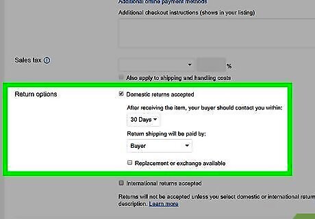 Allow more time for customers to return items so they’re more likely to buy. Buyers may seem hesitant to purchase items if they don’t feel like they have long enough to try and return them. Check the return policy you have on your profile and extend it to 30 or 60 days if it’s not there already. That way, buyers will feel like they have an ample amount of time to try the product to see if they like it. While some buyers may take advantage of the return policy, many people will forget about it and won’t think to return the item. You can choose to offer free returns or make the buyer pay for return shipping.