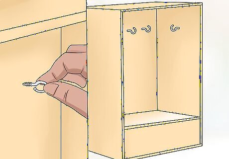 Create a way for the armoire to be hung. You can simply drill a hole through the back of the armoire that will allow you to hang it off a nail or screw in the wall. However, you can choose to add hangers on the backside instead. Be sure that the hole you drill in the backside is in the upper half of the armoire and is perfectly centered between the sides. This will ensure that the armoire hangs correctly.