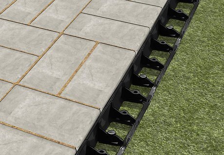 Install edging, if desired. If you want your patio to have a neat and uniform edge, you can install paver edging. Choose from plastic, concrete, metal, or wood. Position the edging along the perimeter of the patio pavers. Secure it with galvanized spikes per the paver manufacturer’s guidelines.