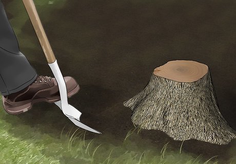 Remove nearby obstacles. Pull up any small shrubs, stumps, roots, and lawn decorations in the immediate vicinity and make sure the ground is free of fallen branches and other debris. Clear the area a few feet beyond your intended patio space to give yourself room to work comfortably. Put your existing outdoor furniture into storage for now—you can replace it later once the patio is finished. If your designated patio area is covered with mulch, remove it to another part of the garden.