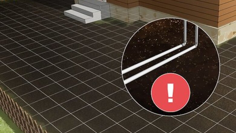 Decide where you want your patio to go. Paver patios most often serve as an extension of the house, allowing visitors to transition from the back door or porch straight onto the stone surface. You could also reserve an out-of-the-way corner of a big yard for a private lounging area. An open, scenic spot with no trees or large plants nearby will work best. Whatever space you choose should be roomy enough to move around in comfortably and hold a few pieces of patio furniture, along with any guests you might be entertaining in the future. Consider drainage issues, such as runoff from the patio surface and edges, to ensure water won’t pool on the patio. If you’ll be installing an awning or overhang, consider whether you’ll also need gutters or downspouts to direct the water away from the patio. It's also important to check the area so you can plan ahead and ensure your pavers will fit.