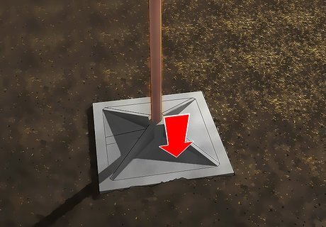 Use an elevated level to create slope as you dig. A slight slope is necessary to promote runoff during wet weather. Cut a 1 in (2.5 cm) piece of scrap wood and tie it to the end of a level. That way, you can ensure that your finished patio has 1 in (2.5 cm) of drop off every 4 feet (1.2 m). Ensure the slope angles away from the patio and add drainage if necessary. You may be able to get by with a perfectly level patio if you live in a place with a hot, dry climate, or if you’ve elected to place the patio beneath an overhang.