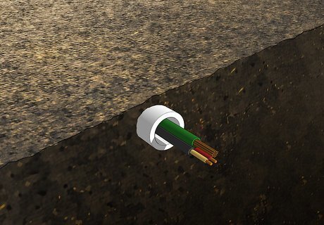 Leave room for underground utilities. If you need to bury electrical cable for outdoor lighting, do it now before you begin adding the substrate—dirt is more forgiving on cables than rougher materials like sand and gravel. Make sure the wire or cable is rated for direct burying or is in an approved conduit. Notch the soil around the edges of the pit with your trowel and lay the cable in a straight path, avoiding kinks, coils, and splices wherever possible. Take a few moments to check whether your lighting elements are functional. Otherwise, you'll just have to dig them back up if something goes wrong later on.