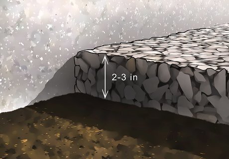 Pour 4 in (10 cm) of crushed gravel for the base. Dump the gravel into the pit and use a heavy iron rake to distribute it out to the edges. Make sure you spread the gravel evenly, adding more until you reach the desired depth. As you did with the soil, tamp the gravel down until it’s firmly set. Wetting the gravel can help you distribute and pack it evenly.