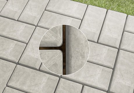 Keep a consistent amount of space between each paver. It may help to separate the stones with a sheet of plywood or with spacer blocks as you install them. Slide the plywood against the edge of the pit and drop your first stone. Then, turn the sheet 90 degrees to create a gap between the neighboring stones. Continue one row or pattern section at a time, repositioning the plywood after laying down each paver. Keep uniformly-shaped pavers as close together as possible. Leaving space between them not only requires more joint sand to fill in the gaps, it also reduces shifting later when the joint sand loosens or is washed or blown away.