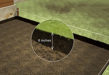 Dig out the patio area to a depth of 12 in (30 cm). This will leave just the right amount of space for both the paver stones and the underlying substrate. You can take care of most of the removal using a single shovel. A hand trowel will also be useful for keeping the edges of the site clean and precise. Since most pavers are 3 inches thick, you will need, the remaining 9 inches of the hole will be filled with gravel and paver sand to help secure everything in place. You can use a tiller to break up the soil first and make it easier to hand shovel the required depth and remove by wheel barrow. Large areas may require a skid steer or mini-excavator or tractor with a backhoe and front bucket attachment. When it’s complete, your paver patio should sit at or slightly above ground level.