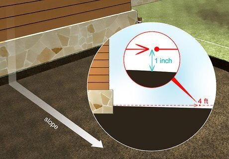Check your slope as you go. Keep your level and a straightedge handy and refer to them frequently. Aim for approximately 1 in (2.5 cm) of drop off every 4 ft (1.2 m). This will ensure that your patio will be able to drain as needed. Adjust the amount of substrate in a given section as needed by tamping or redistributing it. For a flat ground patio, look for the substrate to be as level as possible before proceeding.