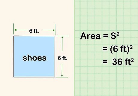 Estimate how much space you need for each type of clothing. Before you start creating a specific design, you need to answer some questions to help determine the needs of your closet. Ask things like: Do I want more hanging storage or drawers? Do I want storage for suits, dresses, and long winter coats? How long should my hanging storage space be? Do I want to hang my belts or roll them? Do I want drawers or open shelving? Write your answers to each question onto a piece of paper. To give you a better idea of the space you have to work with, calculate the rough area you need for each piece of clothing. For example, if you want a 6 by 6 foot (1.8 by 1.8 m) space for shoes, the area is 6 x 6, or 36 square feet (3.3 m).