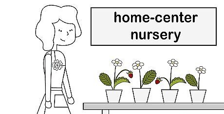 Buy at a home center nursery for basic varieties. Large-scale retailers will have common strawberry plants like Honeoye, Earliglow, and Allstar. Your choices will be slimmer and the plants may not be as cared for. Most of the strawberry plants large home centers carry will be June-bearing varieties, so if you're interested in everbearing or day-neutral plants, you might check a smaller store. Large retailers will usually be the cheapest option and ideal if you're buying in bulk.