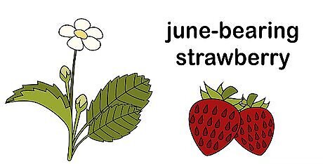 Purchase June-bearing varieties for the largest strawberries. June-bearing strawberry plants are the most common varieties because they bear large, healthy fruit over a period of two to three weeks. Typically, June-bearing strawberries produce one crop per season. June-bearing strawberries are further classified into early, middle, and later-bearing varieties. To extend your harvest, plant one of each plant so they bear fruit at different times. June-bearing strawberries are best to plant in the late springtime, at least a week after the last frost. They respond well to organic, low-nitrogen fertilizers. June-bearing varieties prefer warm temperatures, so apply a 6-8 inch (15-20 cm) layer of mulch over the plant through the wintertime. Popular June-bearing varieties include: Earliglow, Honeoye, Seneca, Jewel, and Kent.