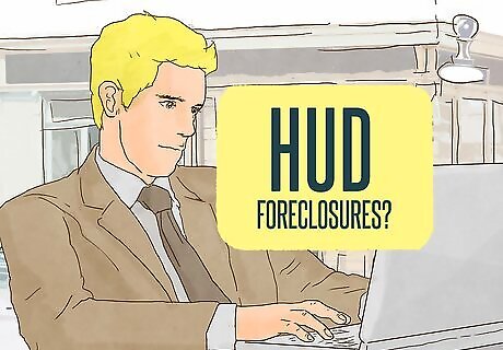 Find HUD foreclosures. There are a number of ways to find HUD homes near you. First, you can access the HUD homestore at http://www.hudhomestore.com/Home/Index.aspx. This allows you to browse HUD homes by location and using a number of other criteria, like price, number of bathrooms, and number of bedrooms. Once you've located a home, you will have to work with a qualified HUD real estate agent to move forward with the buying process. The agent for the homes you want to look at further should be included on the listing for the home. You may also be able to find HUD homes by going to a real estate agent in your area that specializes in HUD homes. Try an online search for this type of agent in your area. Finally, HUD homes are generally listed with other homes in newspaper or local magazine listings. The HUD Homestore Site lists the real estate brokers who are allowed to sell HUD homes. There is a button to search for an agent there if you do not know of any. Each Realtor must re-certify every year in order to qualify to sell HUD homes and their brokerage must have also become certified. For example, if the brokerage is not certified to sell HUD homes, then no agent or broker in that brokerage will be allowed to sell HUD homes. First the brokerage must qualify, then the individual agents or brokers can become certified.