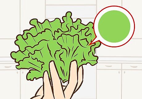 Choose greens with vibrant color. When you’re shopping for fresh salad greens, color is key. Look for leaves with a vibrant deep green color. There shouldn’t be any yellow or brown spots that may indicate the greens are spoiled or rotten. Some varieties of salad greens, such as radicchio, might also contain red colors. The red tones should also be vibrant.
