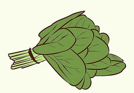 Grab spinach for non-acidic dressings. Spinach has a mild herbal taste that pairs well with a wide variety of ingredients. However, it can wilt easily if tossed with acidic dressings such as vinaigrettes. Instead, pair it with mild creamy dressing for the best texture. Both baby and full-grown spinach make ideal salad greens.