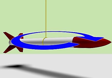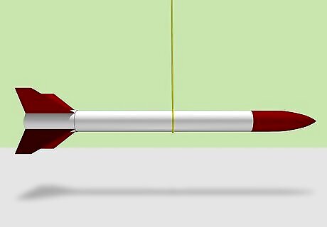 Tie a four to six foot string around the rocket at this point. When hung from the string, the rocket should be parallel to the ground.