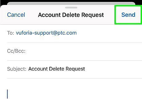 Send your message. This is usually a button that says Send or an icon that looks like a paper airplane. Once your message is received, Vuforia support will delete your account (or contact you for additional information).