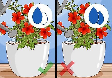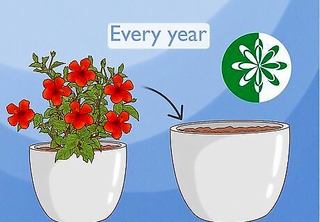 Re-pot Chinese hibiscus each spring in new potting soil. Use a bigger pot if the plant appears root bound.
