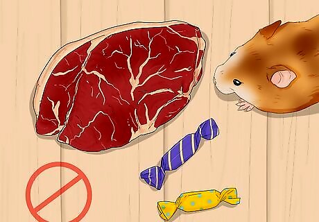Avoid “human” foods. This includes things such as candy, pasta, raw meat/fish, sugar, and desserts. Hamsters can develop diabetes. Foods that you might not consider high in sugar content will be too sugary for your hamster. This can be damaging to their health.