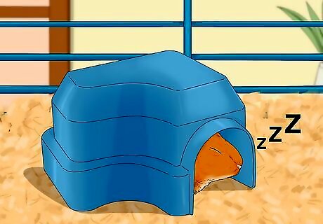 Respect its sleeping cycle. Although hamsters are nocturnal animals, they do shuffle around some in the day to get food and such. Although it may seem awake, it's not in the mood to play, unless you see that it feels otherwise. Likewise, keep other people around the hamster to a minimum. It's important that the hamster only bonds with you for now, as it will have plenty of friends later. But now, it needs to know that you are its companion and you will never harm it.