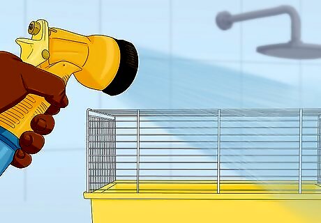 Rinse the cage and let dry. Make sure that all the water has evaporated and all of the cleaning solution has been removed. Remember that hamsters have sensitive noses and the scent of vinegar or soap will be bothersome.