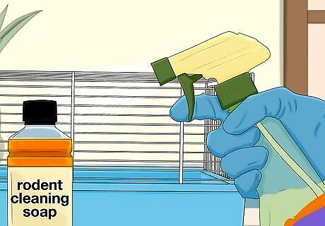 Clean the cage thoroughly. Use regular dish soap mixed with water. Even the tiniest trace of other types of soap (like hand-wash) can prove uncomfortable for your furry buddy. Use special hamster or rodent cleaning soap, which you can buy from most pet shops. You can also use a vinegar solution to clean the hamster’s habitat.