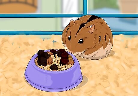 Spread the food around the cage and hide it in toys and tunnels. Make your hamster search for it. If you place it in a bowl, your hamster may become overweight and less interested in physical activity.