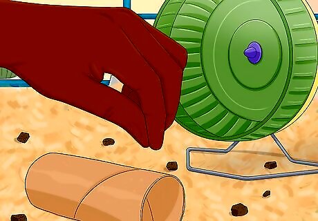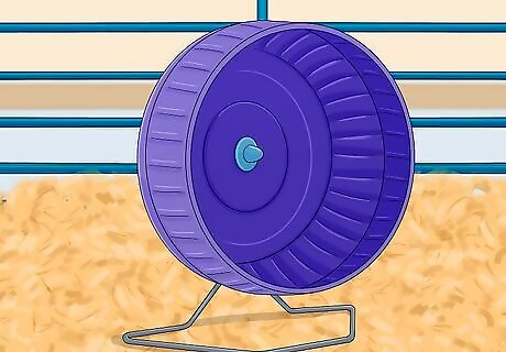Get a suitable hamster wheel. The wheels that come with the cages are generally too small and isn't good for the hamster's back. A wheel is too small if your hamster's back curves upwards. Buy one that is minimum 20cm (7.9in) for a dwarf hamster and 28cm (11in) for a Syrian. Don't be afraid to go bigger. Dwarf hamsters find it easier to control a larger wheel; they may fly off a smaller wheel and injure themselves. Hamsters have a necessity for a solid wheel. If the wheel has gaps in it, it could injure the hamster.