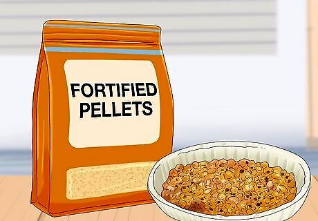 Feed the hamster every day. Hamsters are omnivores, meaning that they need to eat a varied diet of seeds, grains, sometimes nuts, insects, vegetables, and sometimes fruit. You should provide your hamster with a high-quality, varied seed mix. Provide your hamster with enough food each day to fill both cheeks, approximately 15g (1/2oz) for a Syrian hamster or 8g (1/4oz) for a Dwarf hamster. Make sure you provide fresh food every day. If you want to change your hamster's food, wait a few weeks after taking it home; then gradually introduce the food over a period of ten days. Your hamster is a hoarder, so it'll keep private stashes. Removing these stashes can be very stressful, so if you are worried about the quality of their stored food, remove it and replace it with fresh food exactly where your hamster had it. Choose an earthenware or metal dish for their food. This is the best type of feeding bowl as your hamster will simply chew through a plastic one.