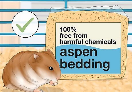 Replace their bedding. In order to retain the hamster's scent on the bedding, mix a small amount of unspoiled bedding with new bedding. Cheap bedding can be found at most grocery stores. Another good bedding is shredded tissue; you could also use shredded paper towel. Do not use newspapers, as the hamster will lick the ink off it and this will make it extremely ill. Never use pine or cedar wood shavings, as they are unhealthy for hamsters. Aspen is fine.