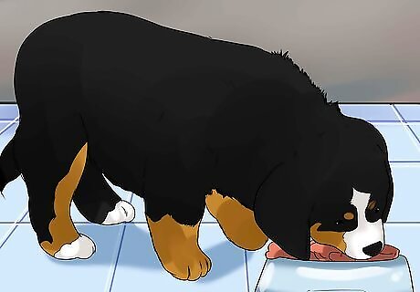 Hydrate your dog. Dogs need a constant supply of fresh and clean water to help them digest their food. Since Bernese mountain dogs are so large, she will likely drink more than a smaller dog, so keep a close watch on the water levels to ensure she has plenty. You should also clean the water bowl every so often with dish soap and water, then rinse and dry it. This will cut down on any possibility of algae or bacteria that may grow in the bowl if not cleaned properly.