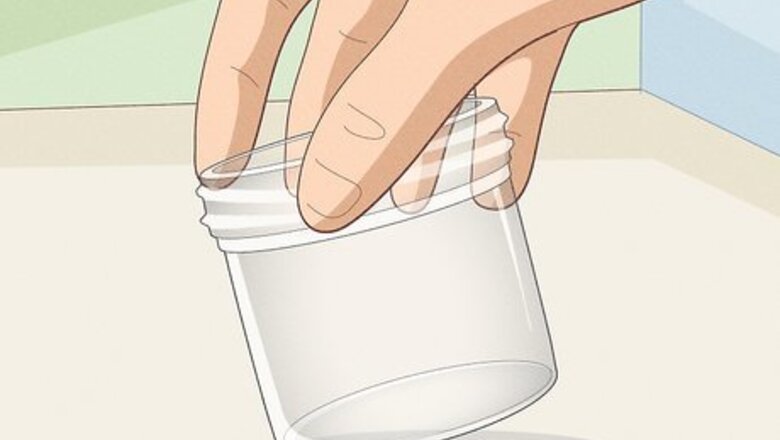 Set up your jar or container. Collecting ants using bait is a relatively simple process that does not require a lot of time or energy. The majority of your time will be spent gathering and preparing your materials before you set your bait. Ants are attracted to sources of food, which are generally a combination of sugar and water. You'll also need a container to place your bait into, which can be any size, from a cup or glass to a gallon bucket. Bait can be as simple as sugar and water, but feel free to use other food like fruit, vegetables, or starch. A general rule for collecting ants is the larger your trap, the more ants you will end up attracting.