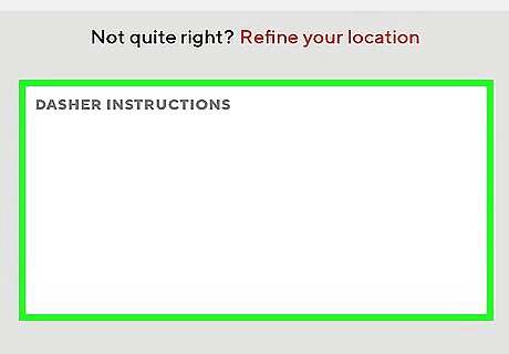 Enter delivery instructions (optional). If your driver has to enter a code, call you from outside, or meet you in a certain location, type specific instructions into the ″Dasher instructions″ box.