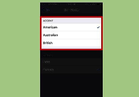 Choose an accent. This will reflect regional differences in Siri’s voice (e.g. American, British, or Australian English). Not all language selections will have accent options. Changing Siri’s accent may have some initial effect on its understanding your voice, but should adjust to the way you speak over time.