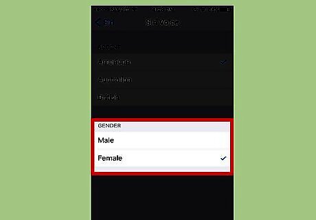 Choose a gender. Depending on your selection, this will set Siri to speak in a male or female voice matching whatever language and accent you have selected. Different genders may not be available for all languages. If you're using iOS 8, use the "Voice Gender" menu to change Siri's gender, if different genders are available for your language.