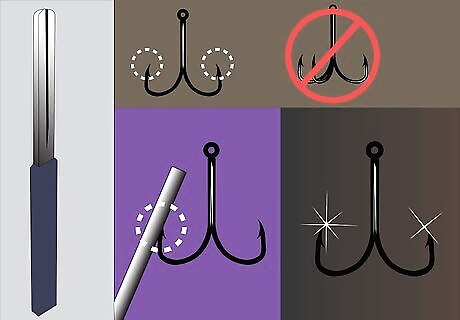 For trolling with artificial lures or bait, always use a sharp, medium shank, straight hook. The straight hook is the most common trolling hook, although for smaller big game double hooks are used. Treble hooks are never used for big game fishing. The hook tip must always be sharpened with a hook file. When trolling with artificial or live bait, for big game, the action is few and far between, thus the necessity for having sharp hooks. The bill of a marlin and the areas close to it are hard, and it takes a sharp hook to get a hook-up versus a strike.Choose a Hook for Saltwater Fishing Step 11Bullet1.jpg Hooks rust faster from trolling use compared to still fishing use, so be sure to always rinse and soak your lures and hooks.Choose a Hook for Saltwater Fishing Step 11Bullet2.jpg