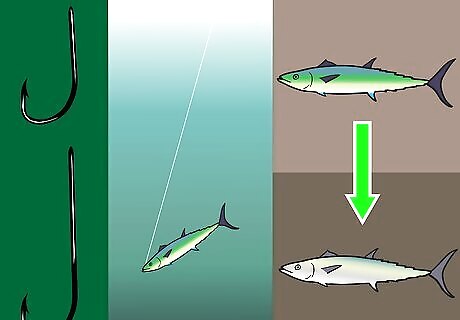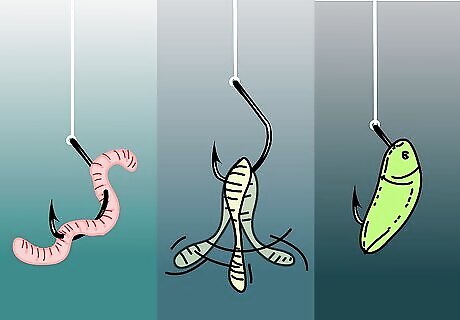 Used the AH hook for its spaciousness in placing a bait on it. Set the hook, when a fish takes the bait with this type of hook. With an artificial bait, set the hook a bit quicker than a natural bait. With a hard artificial bait set the hook quicker than with a soft artificial bait.Choose a Hook for Saltwater Fishing Step 7Bullet1.jpg When attaching an artificial bait or real bait to a hook, notice how it sits on the hook and what action is has when retrieved, trolled or just stationary. This hook is not as sturdy as other hooks but can hold baits well. Use barbed shanks to thread plastic baits on the shank. However, threading the plastic bait on the hook curve, like in the illustration, works very well. As an option, slide on a piece of soft plastic chunk to the bottom of the hook's eye.Choose a Hook for Saltwater Fishing Step 7Bullet3.jpg